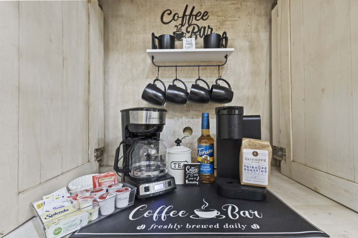As common for vacation rentals in our area, we provide one round of bath soaps, shampoo, conditioner, body lotion, and 2 rolls of toilet paper in the bathrooms. In the kitchen, there is 1 round of paper towels, laundry detergent, dishwasher detergent, dish soap, and trash bags. We also provide full coffee bar supplies and basic cooking essentials like salt, pepper, and cooking oil. These stocked amenities are intended to get our guests through the first night. We are not a hotel, so we do not provide housekeeping or amenity restocking unless there is an immediate need. Please bring the extra items you will need for your vacation.