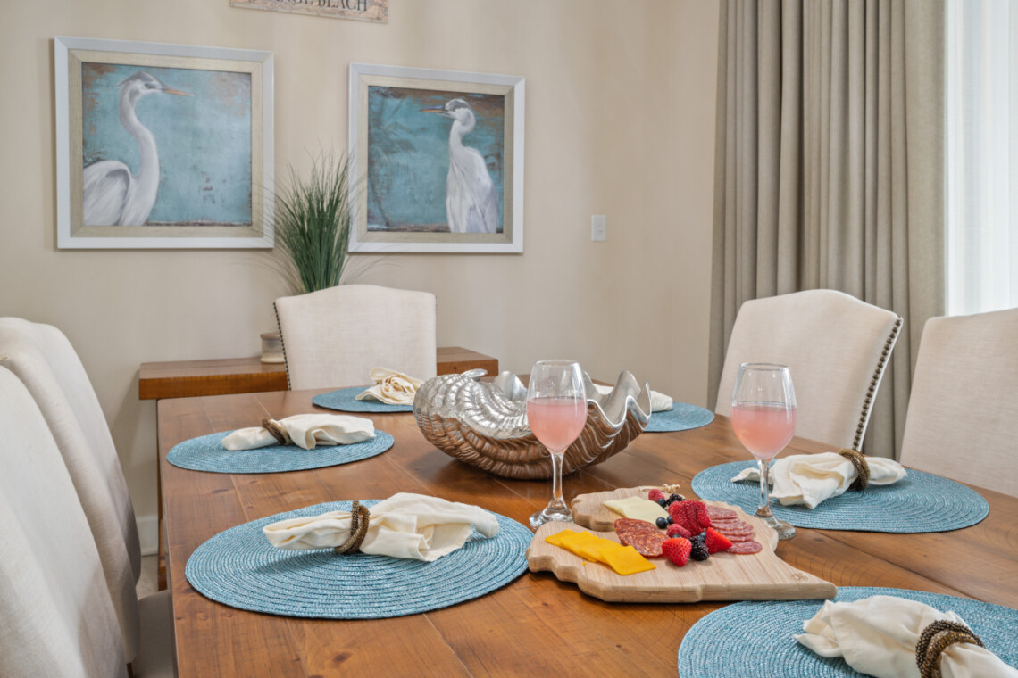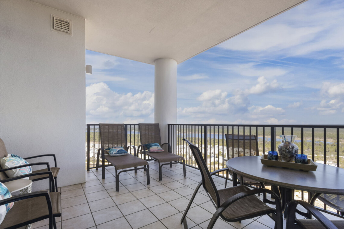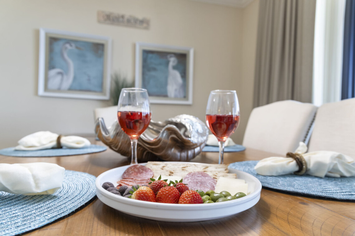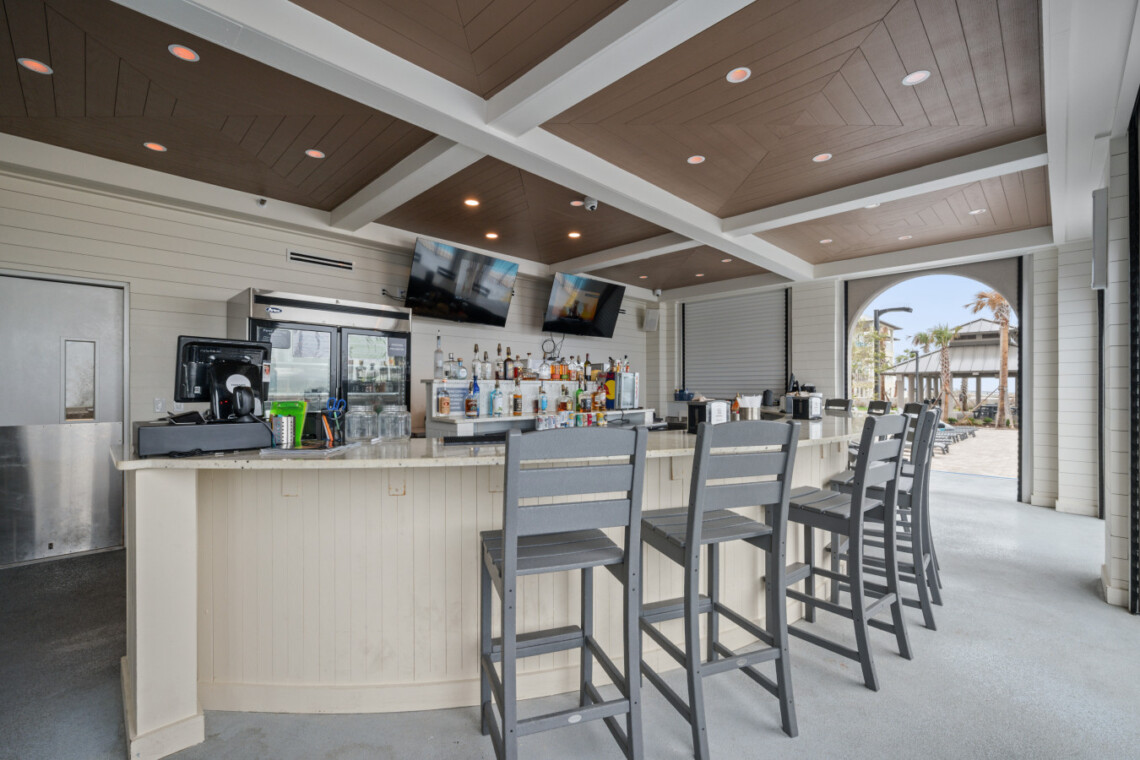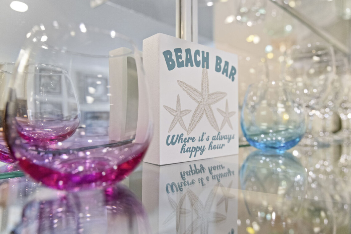 The wet bar adds an extra touch of convenience with its sink, ice maker, blender, and glassware—perfect for prepping sunset drinks to enjoy on your expansive balcony for alfresco dining or simply unwind as the sun sets over the lagoon horizon. Seating for 8 allows everyone to take in the stunning panoramic views of the Gulf State Park and main strip of Orange Beach,