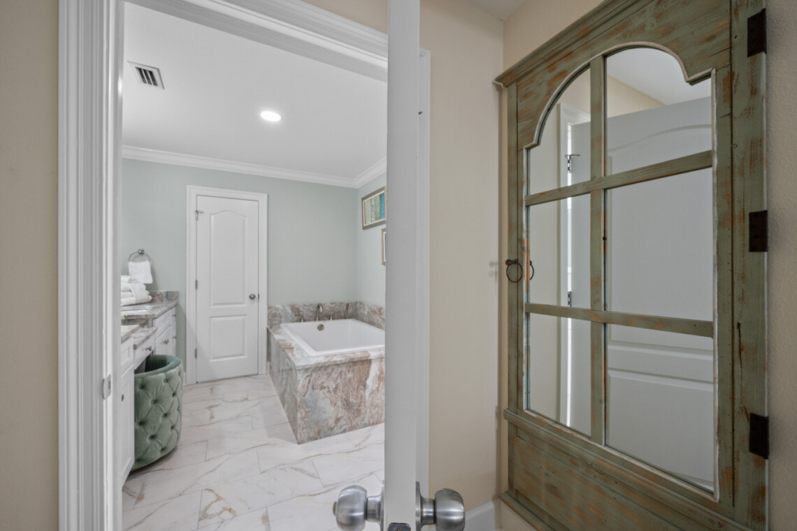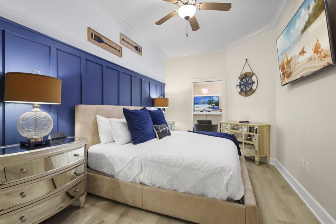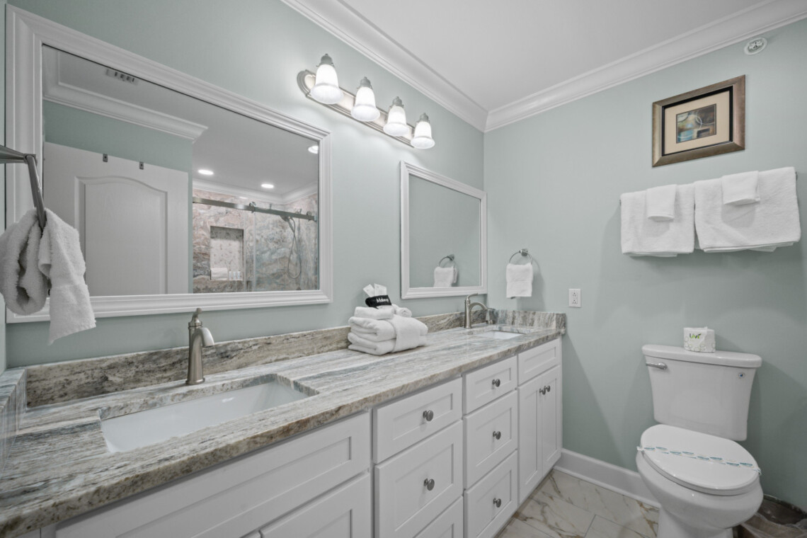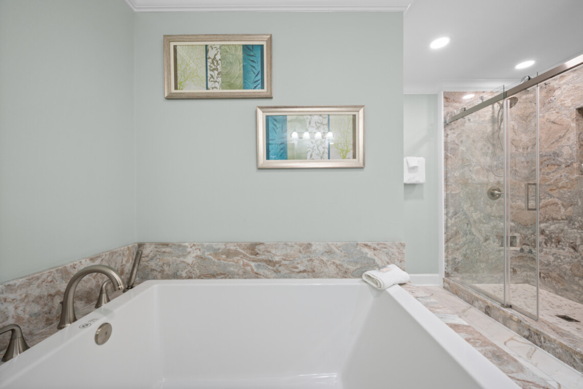 Rest easy in four stylishly appointed bedrooms, each offering beachy vibes and Smart TVs with cable. Featuring 2 master suites provide private, spa-like bathrooms, and since February 2025, you’ll be pampered with luxury upgrades: floor-to-ceiling tile, glass walk-in showers, double showerheads in the masters, and a deep soaking tub in the primary suite.