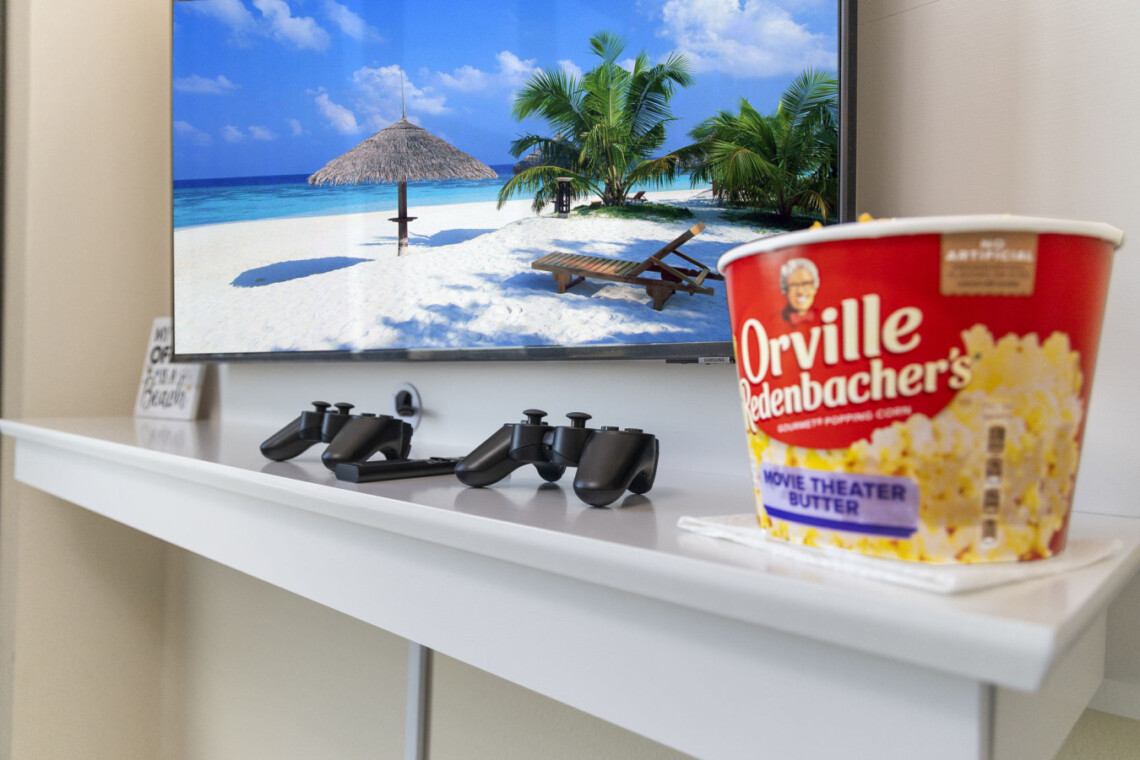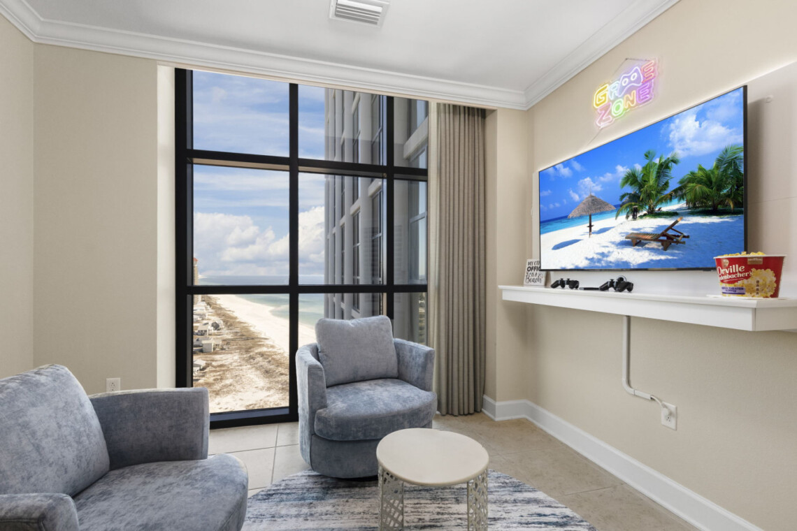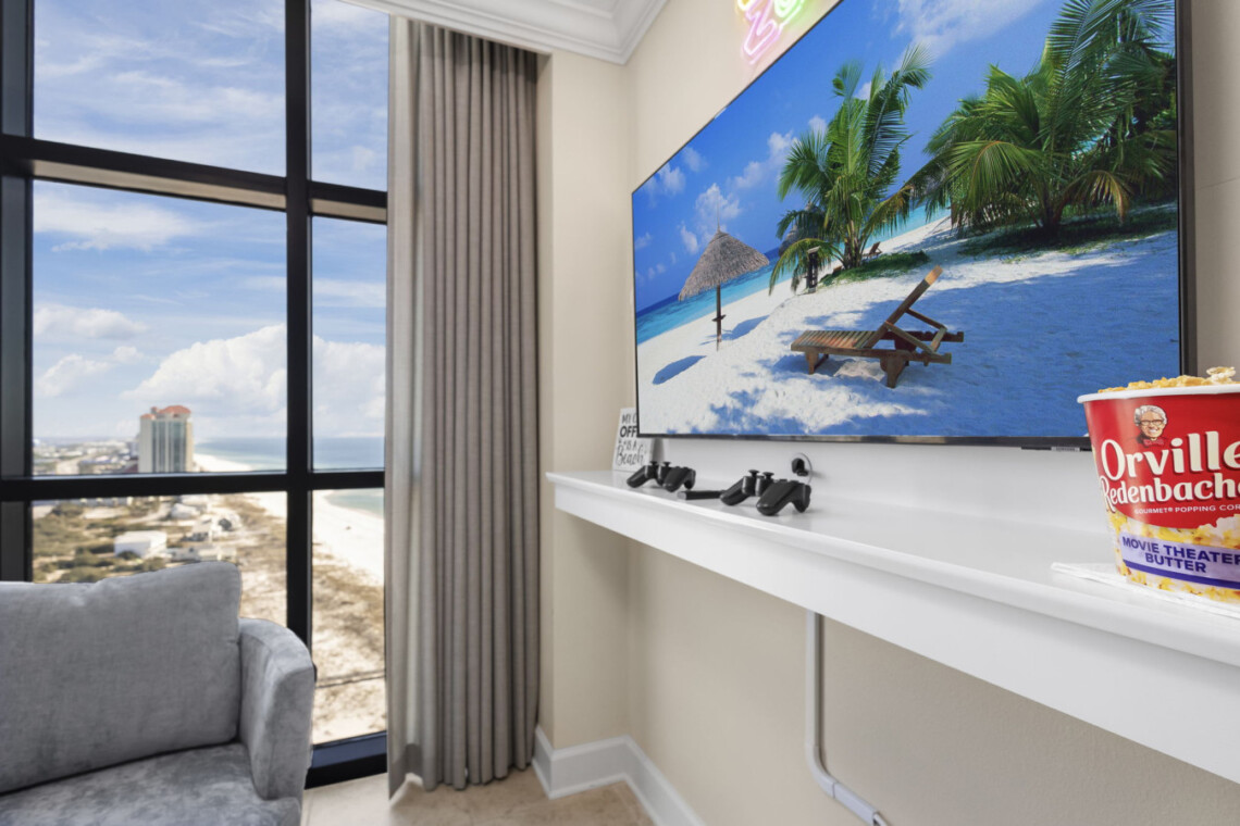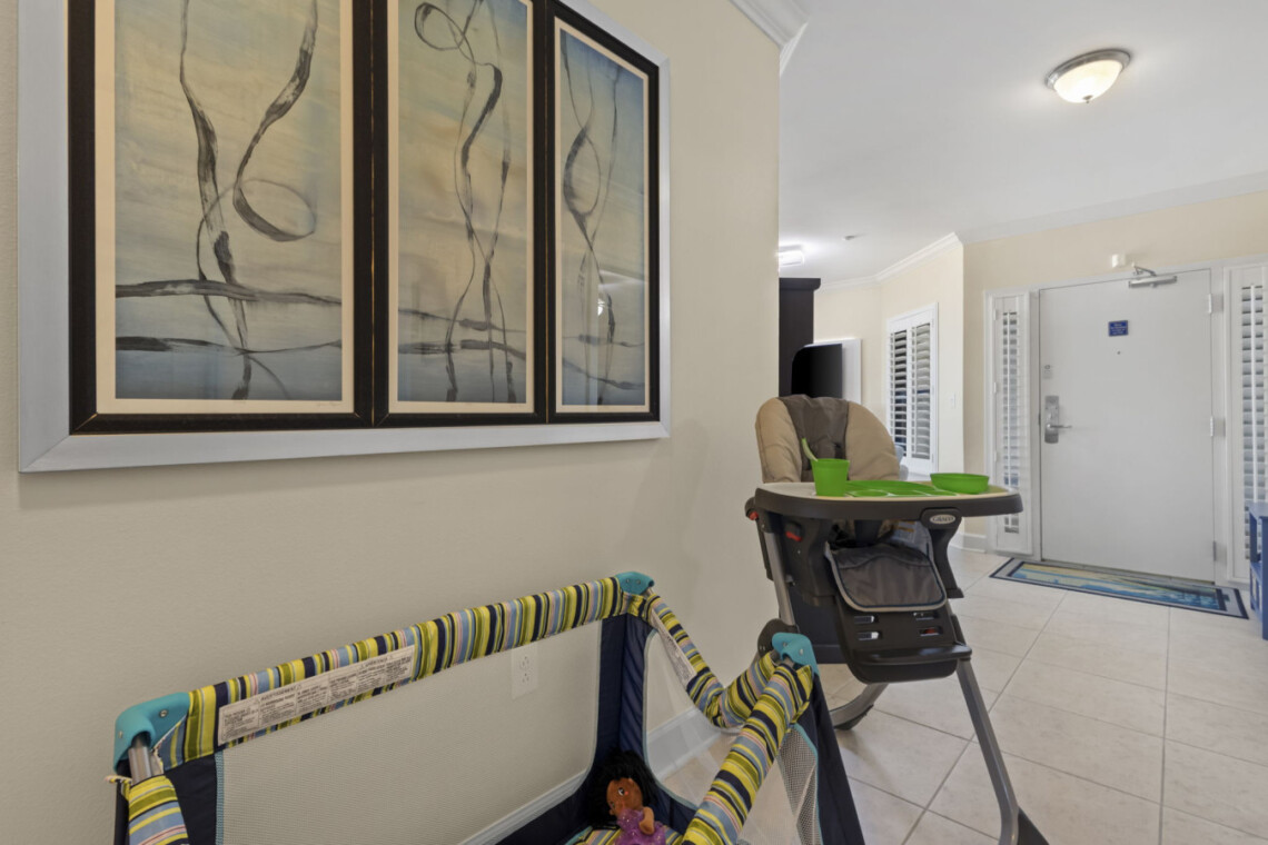 Traveling with little ones? We’ve got you covered! The condo comes equipped with family-friendly amenities like a high chair, Pack ‘n Play, and kid dinnerware to ensure your little ones are comfortable and safe. Whether it’s game night, family movie time, or just a quiet moment with the kids, this space ensures everyone has their own corner of fun and relaxation.